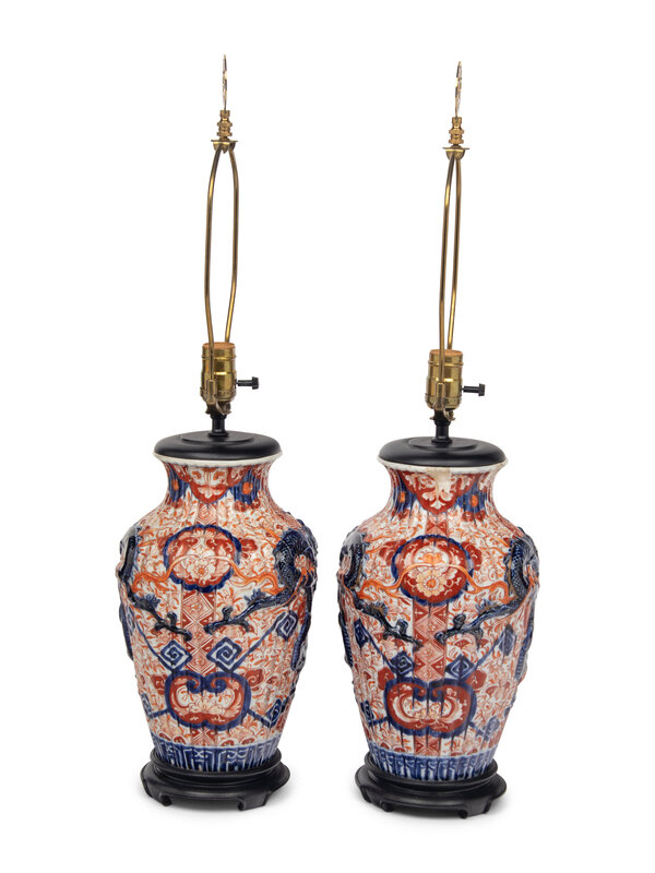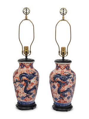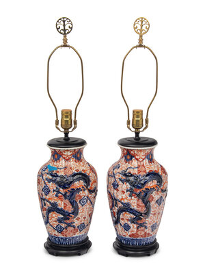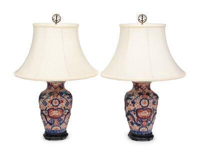 A Pair of Imari Palette Porcelain Vases Mounted as Lamps