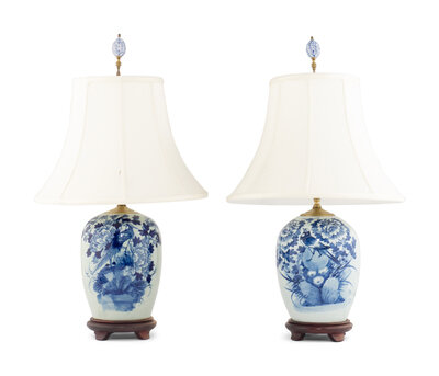 A Pair of Blue and White Porcelain Jars Mounted as Lamps