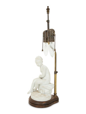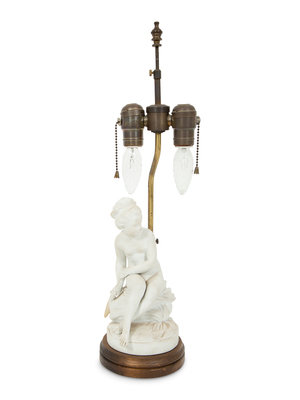 A French Biscuit Porcelain Group Mounted as a Lamp