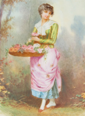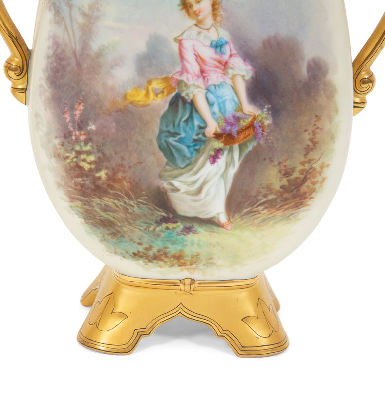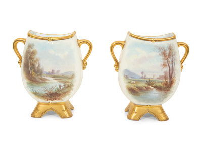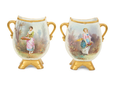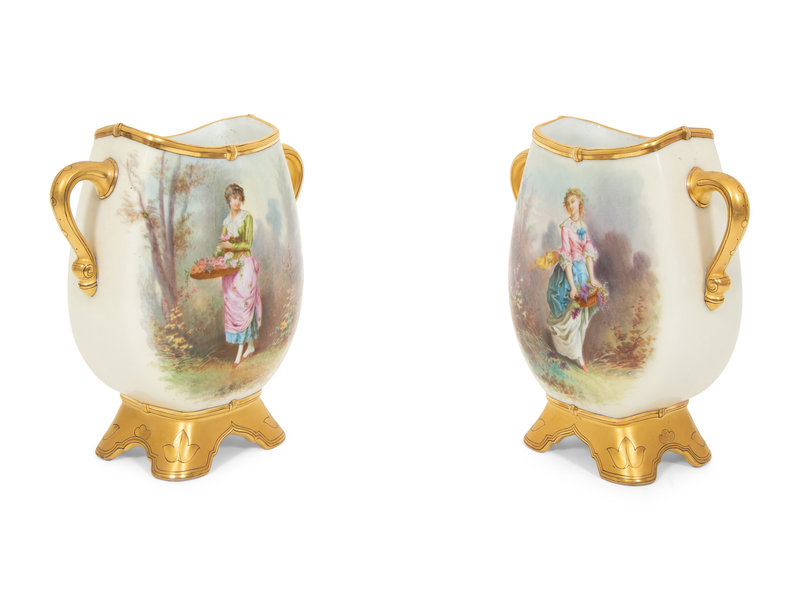 Pair of Continental Painted Porcelain Footed Vases