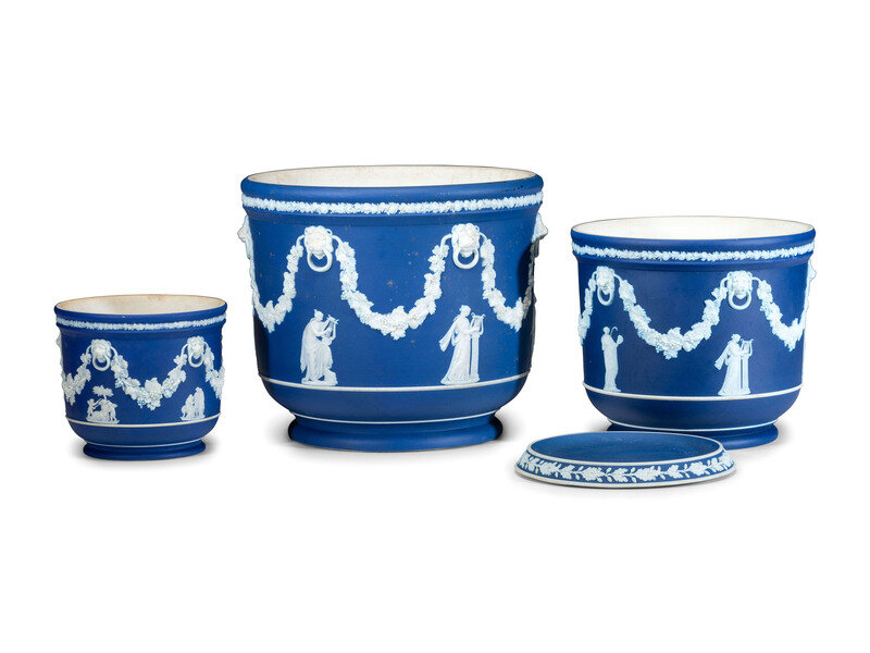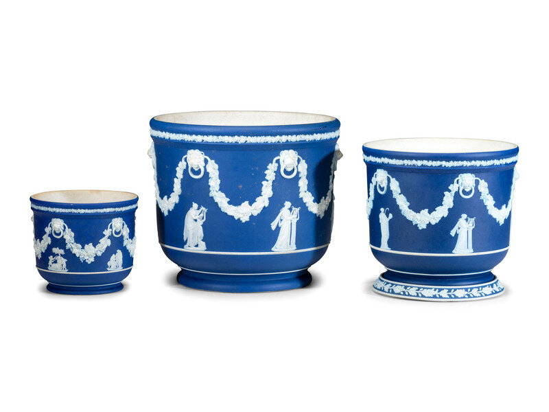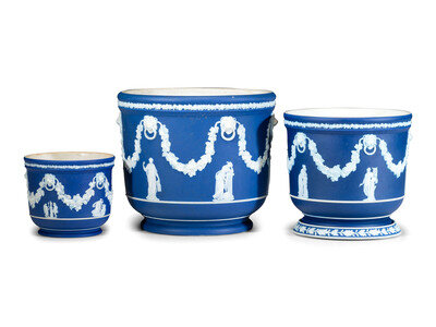 Three Wedgwood Blue Jasperware Jardinieres