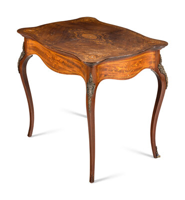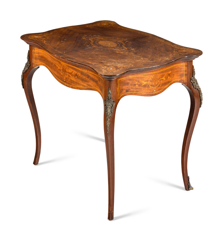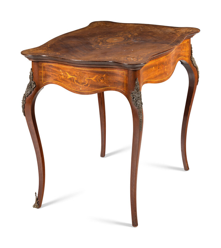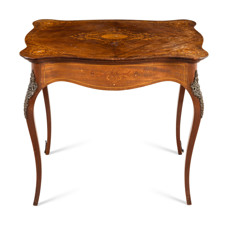 A Louis XV Style Marquetry and Mother-of-Pearl Inlaid Side Table