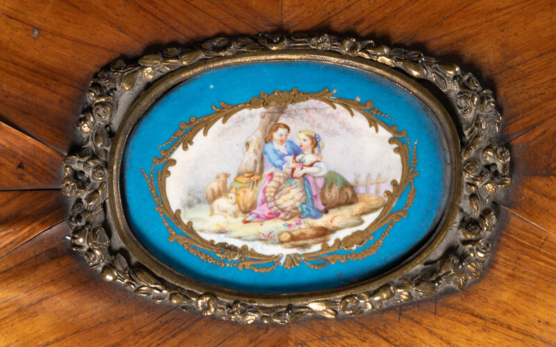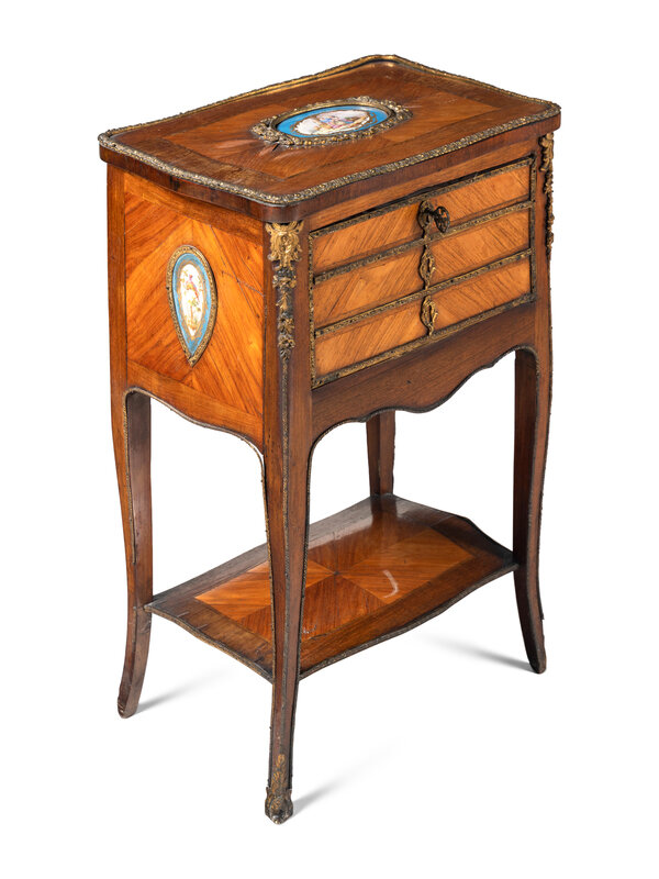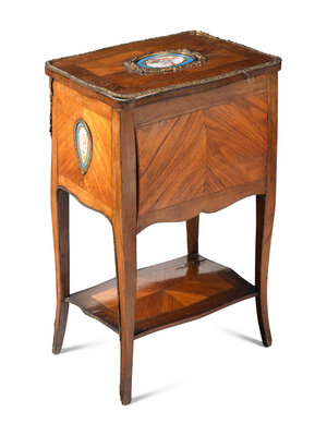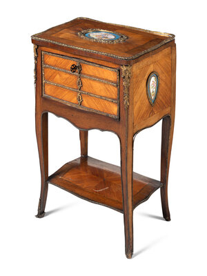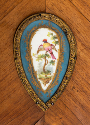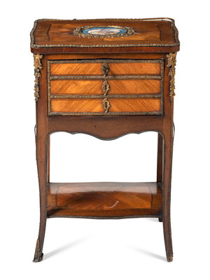 A Louis XV Style Chiffonier with Porcelain Inset Plaques
