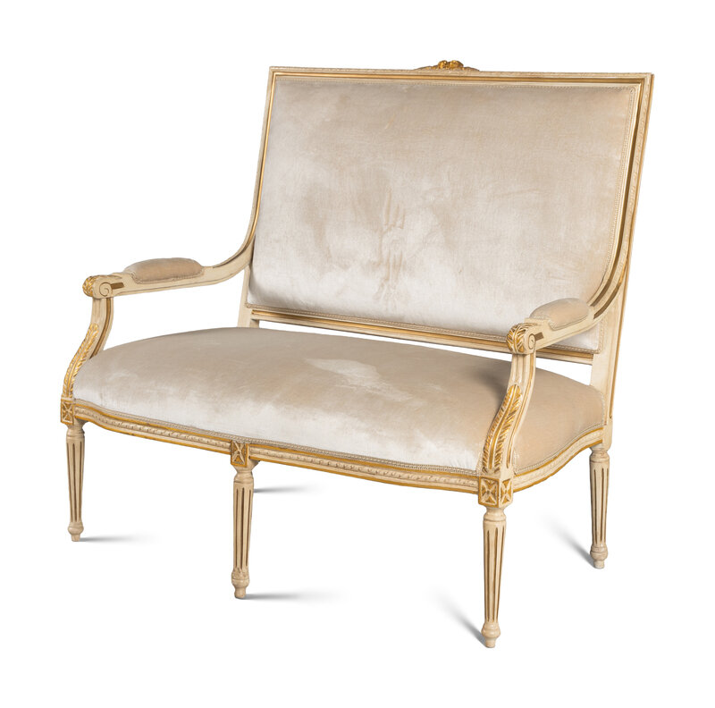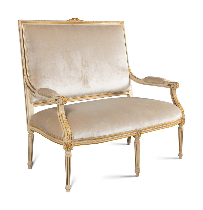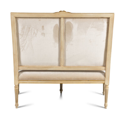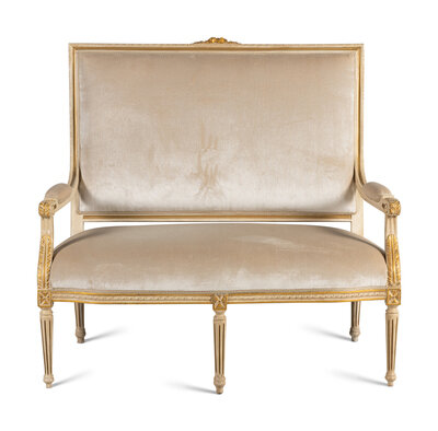 A Louis XVI Style Painted and Parcel Gilt Settee
