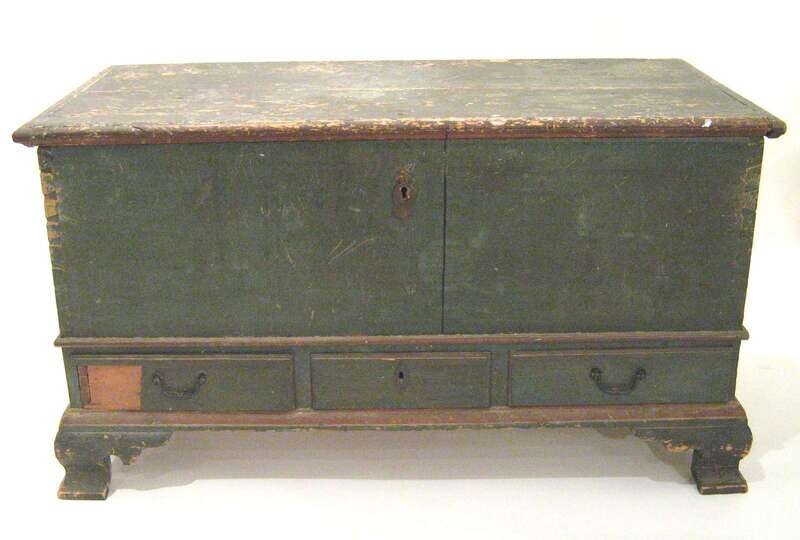 Green-painted blanket chest with drawers pennsylvania, late 18th century