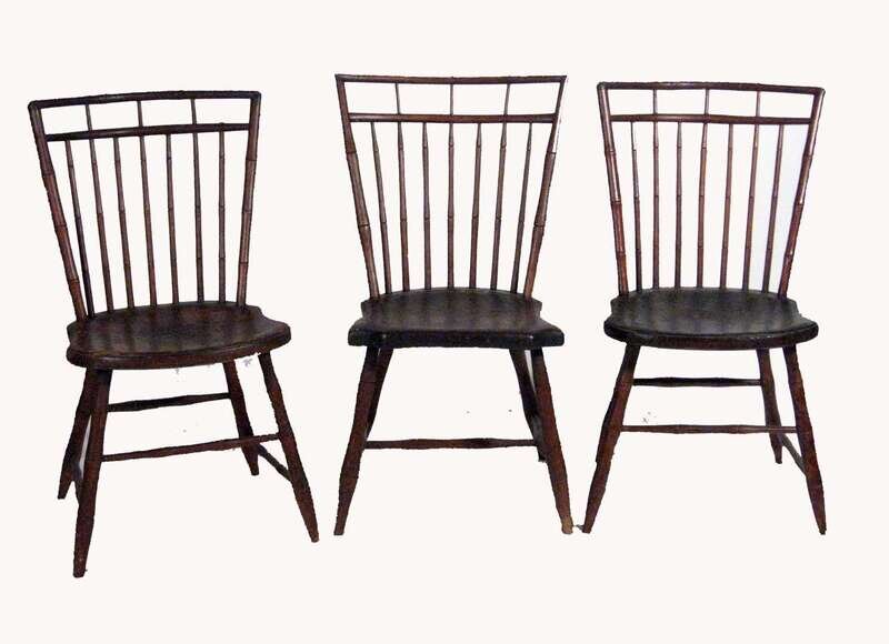 Three bamboo-turned birdcage windsor side chairs richard mason, philadelphia, 1764-1993