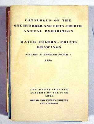 Pennsylvania Academy of The Fine Arts: School Circular... Session of 1914-1915. Philadelphia, 1914. Photo frontis., other illus. * Exhibition of Paintings and Drawings by Representative Modern Masters, April 17 to May 9, 1920. Philadelphia, 1920. * Catalogue of The Forty-Sixth Annual Water Color and Print Exhibition and The Forty-Seventh Annual Exhibition of Miniatures... 1948. [Philadelphia], [1948]. 1st ed. Illus. Adverts. Signed on front wrapper by Thornton Oakley. * Catalogue of The Forty-Eighth Annual Water Color and Print Exhibition... 1950. Philadelphia, [1950]. Illus. Adverts. * Catalogue, The Fiftieth Annual International Exhibition, Water Colors, Prints, Drawings... 1952. Philadelphia, [1952]. Illus. Signed on front wrapper by Thornton Oakley. * The 51st Annual Exhibition, Water Colors, Prints, Drawings 1953. [Philadelphia], 1953. Illus. Adverts. * Catalogue of The One Hundred and Fifty Seventh Annual Exhibition, Water Colors, Prints, Drawings 1957. Philadelphia, [1957]. Illus. * Catalogue of The One-Hundred and Fifty-Fourth Annual Exhibition, Water Colors, Prints, Drawings, 1959. Philadelphia, [1959]. Illus. All 8vo, orig wrappers; scattered light wear.