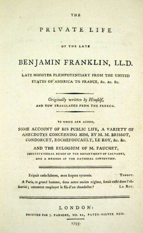 The first version of Franklin's autobiography to appear in English.