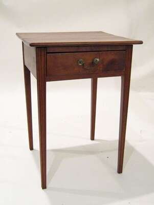 With square top above one drawer and straight apron, the whole resting on square molded legs.