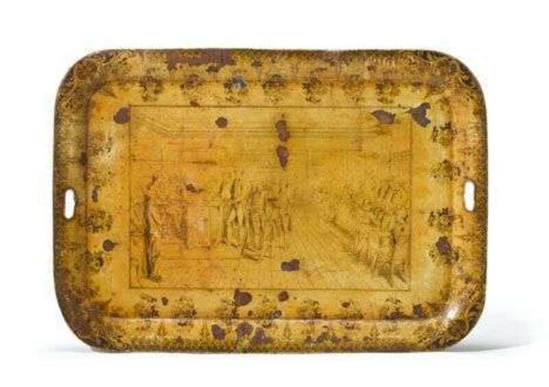 Enameled and printed tinware tray probably england, 19th century