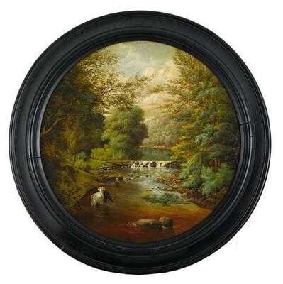 John Heyl Raser(1824-1901) landscape of forest interior with stream and cattle