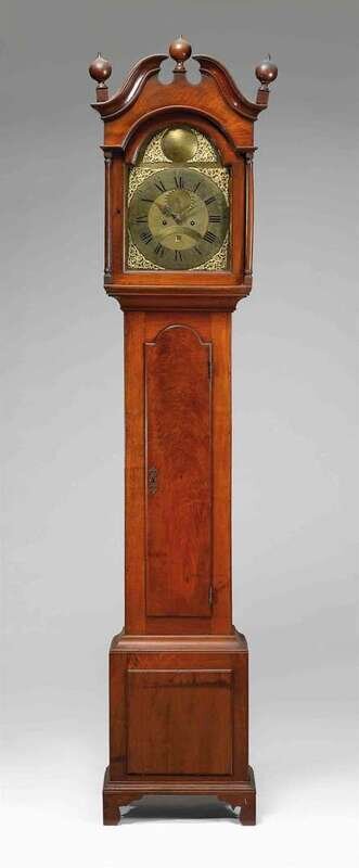 Walnut tall case clock movement signed 'seneca lukens' horsham, pennsylvania, circa 1774