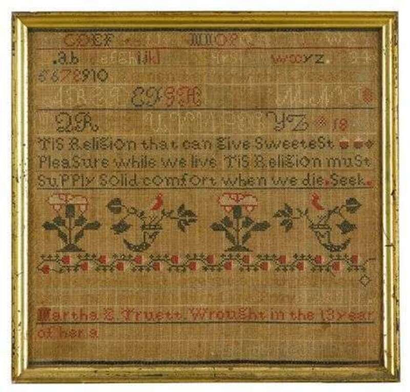 Needlework sampler wrought by martha e. truett, 1847
