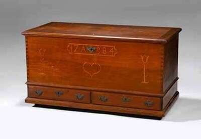 Inlaid walnut blanket chest with two drawers possibly chester county, pennsylvania, dated 1784