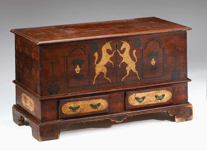 Painted and decorated blanket chest pennsylvania, 19th century