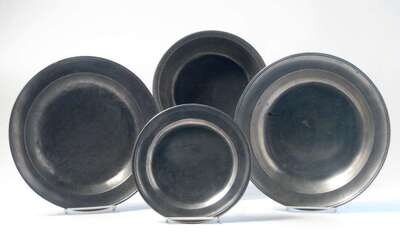 Two pewter deep dishes, plate and basin philadelphia, late 18th/early 19th century