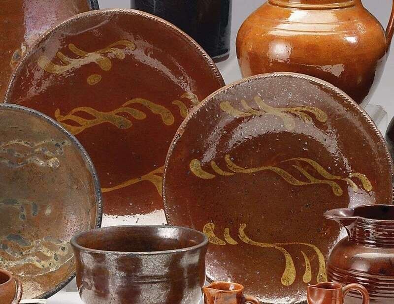 Two slip-decorated redware dishes pennsylvania, 19th century