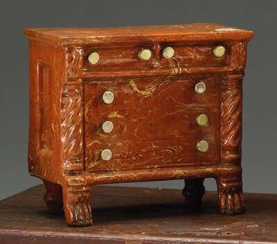Redware bank in the form of a Late Classical style chest of drawers pennsylvania, mid-19th century