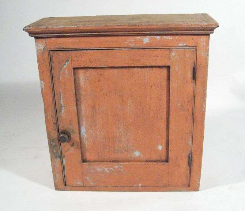 Salmon-painted hanging cupboard pennsylvania, circa 1840