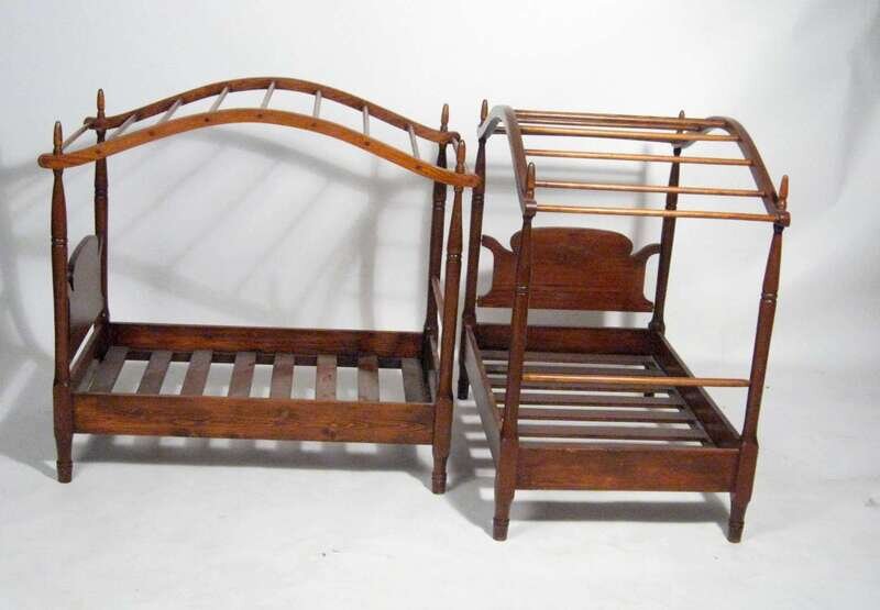 With bowed canopy on turned posts with serpentine head boards.