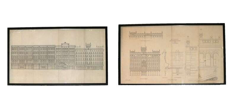 Two elevations of the Strawbridge & Clothier's Store on 8th and Market stacy keeves & sons architects, late 19th century
