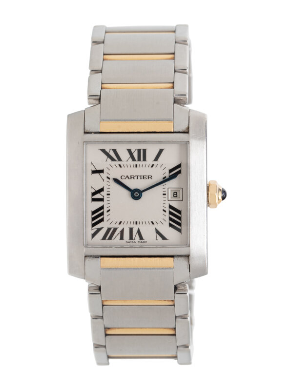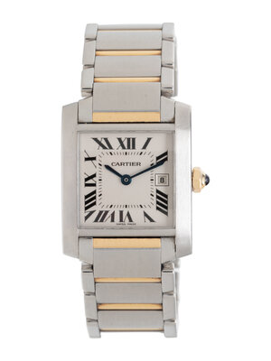 CARTIER, STAINLESS STEEL AND 18K YELLOW GOLD 'TANK FRANÇAISE' WATCH