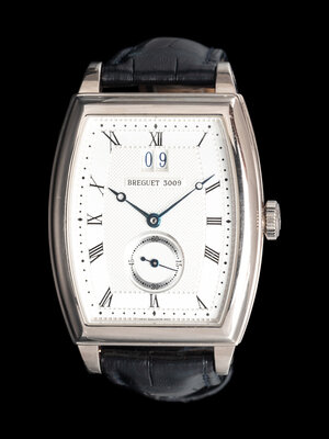 Bracelet/Strap: Black leather with 18K white gold Breguet deployant clasp