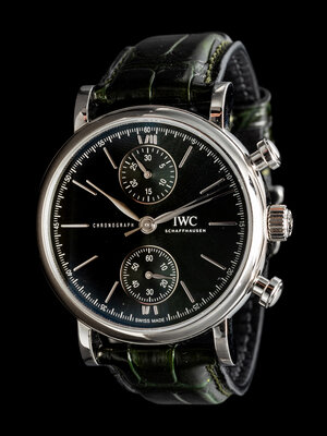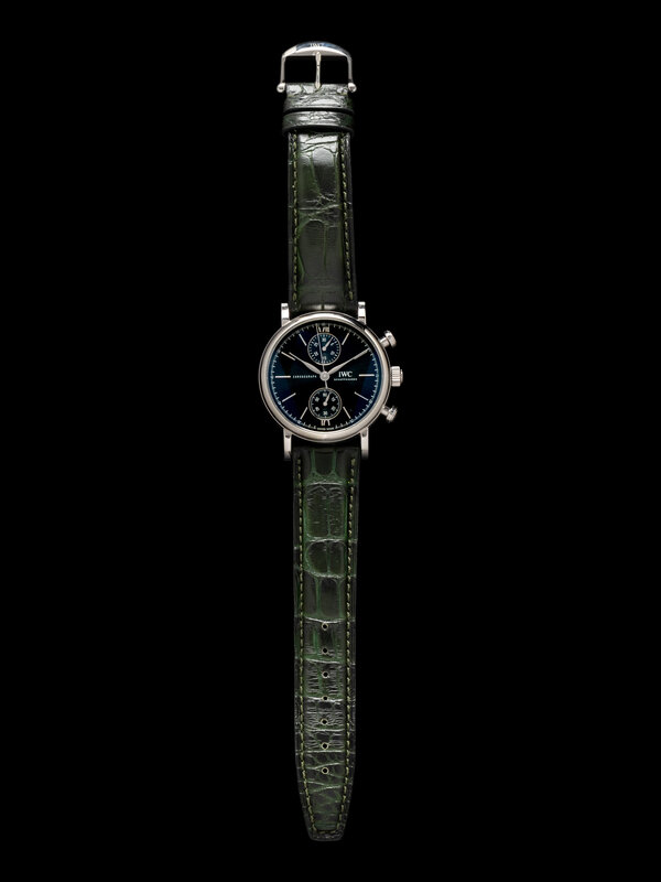 Bracelet/Strap: Green leather with stainless steel IWC tang buckle