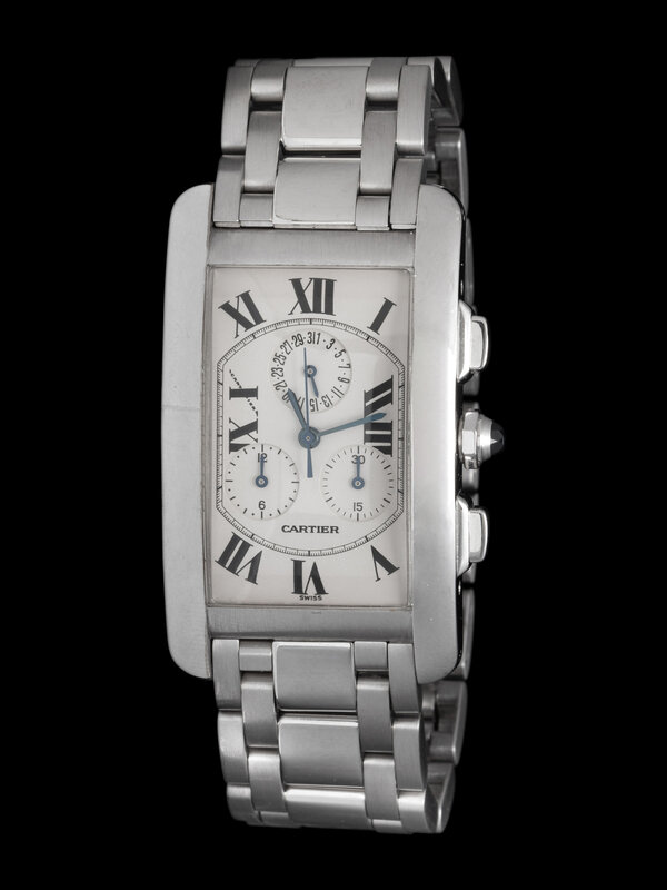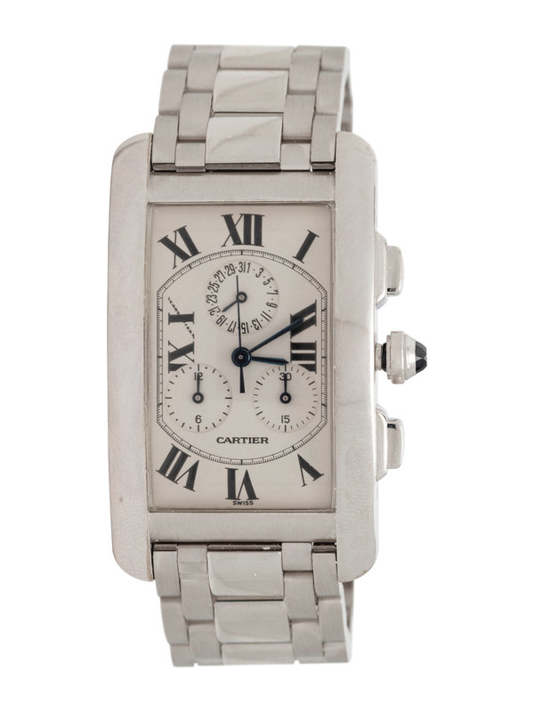CARTIER, REF. 2312 18K WHITE GOLD 'TANK AMERICAINE' CHRONOGRAPH WATCH