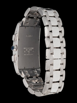 Bracelet/Strap: 18K white gold link with double deployant clasp signed Cartier