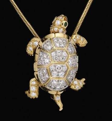 18 karat yellow gold, platinum and diamond turtle pendant, Tiffany & Co.