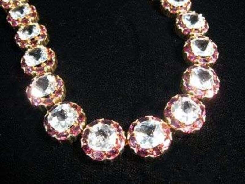 14 karat yellow gold, white topaz and pink sapphire necklace 20th century