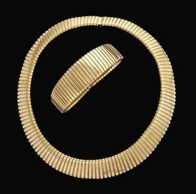 Necklace length: 14 in., Bracelet length: 6 in., 75.4 dwt.