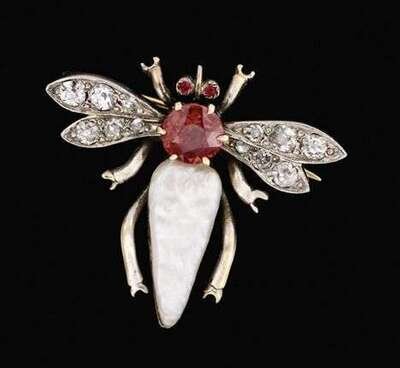 White gold diamond and pearl "bee" brooch georgian