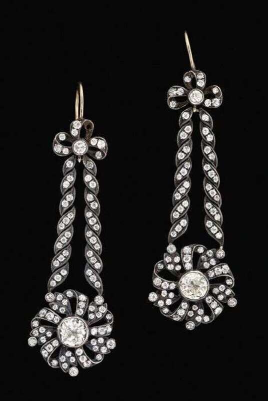 18 karat white gold antiqued diamond earrings