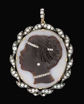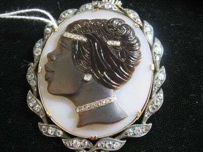 Antiqued diamond and cameo brooch