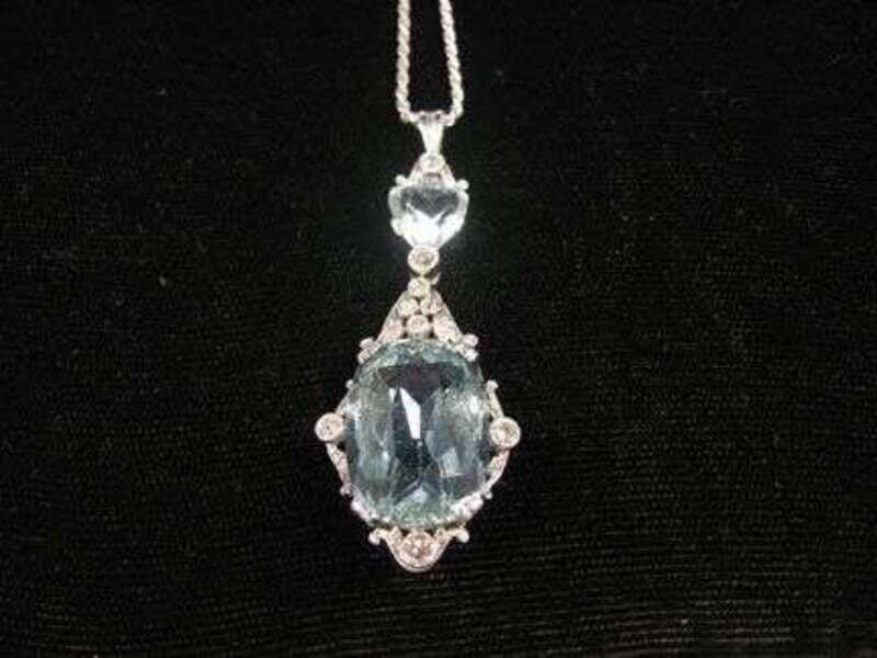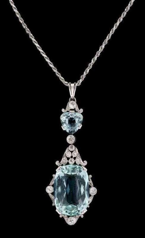 14 karat white gold aquamarine and diamond pendant belle epoque