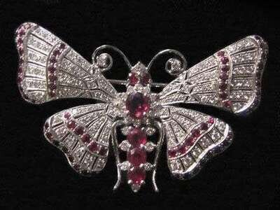 18 karat white gold, diamond and ruby "butterfly" pin 20th century