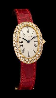Lady's 18 karat yellow gold and diamond wristwatch, Cartier baignoire collection