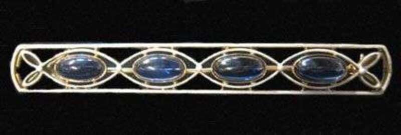 14 karat yellow gold and enamel sapphire bar brooch