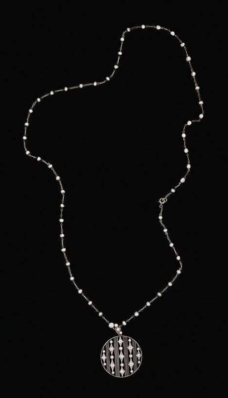 18 karat white gold seed pearl and filigree necklace art deco