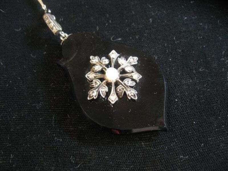 Onyx diamond and seed pearl pendant and neck chain