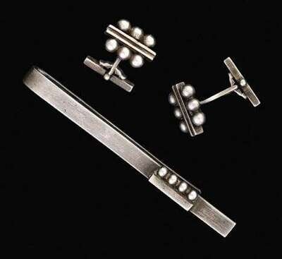 Sterling silver cufflinks and tie tack set, Georg Jensen