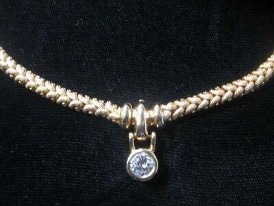 14 karat yellow gold and diamond solitaire necklace