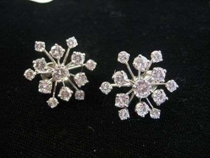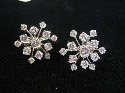 Pair of platinum and diamond "snowflake" earrings, J.E. Caldwell 1950s