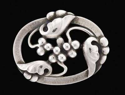 Possibly early traditional Jensen berry and branch motif, marked "Sterling Denmark, GJ".