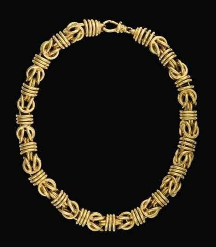 Heavy twisted wire form necklace, marked 750 and signed with maker's hallmark.