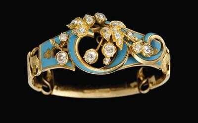 18 karat yellow gold blue enamel and diamond bangle bracelet edwardian