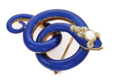 14 karat yellow gold and blue enamel "serpent" pin 1850s