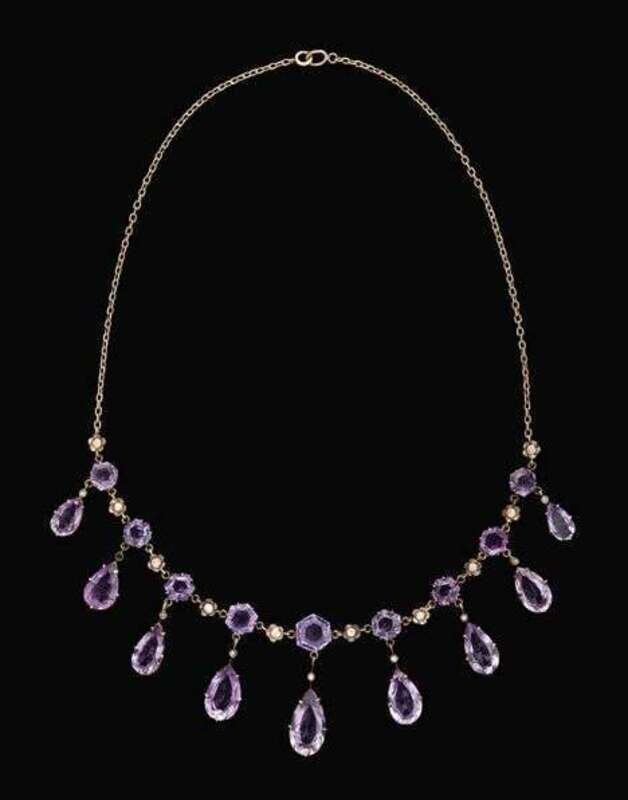 Yellow gold and amethyst stylized riviere necklace georgian 1830s